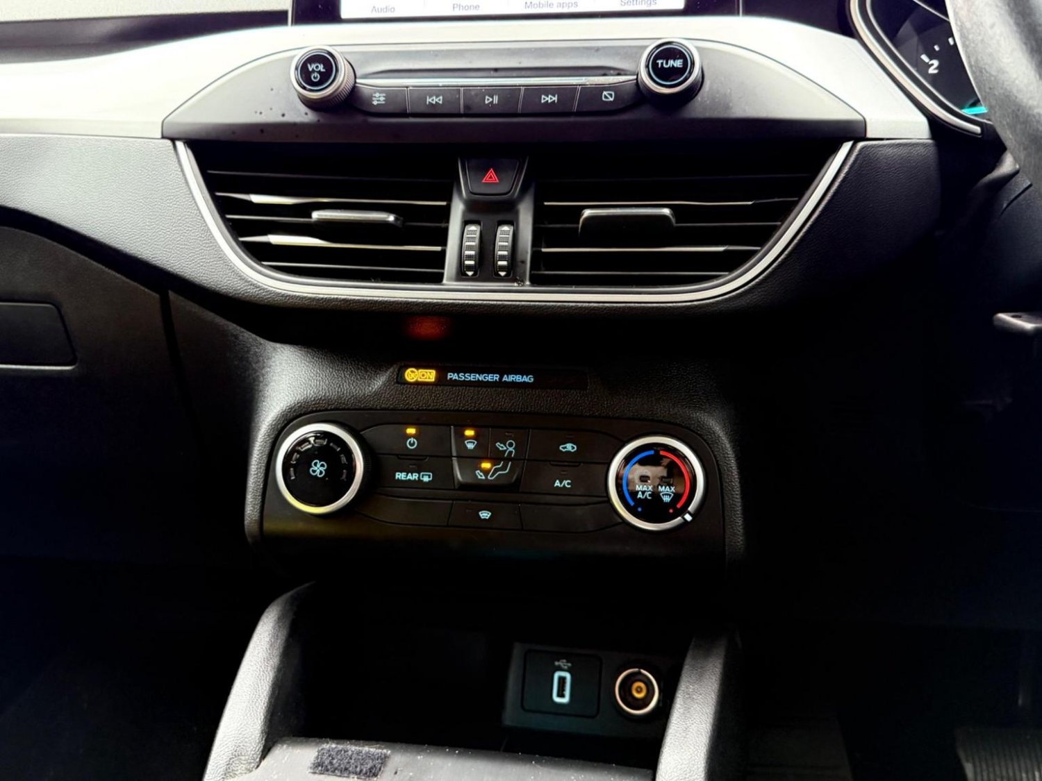 16in Alloy Wheels - 5x2 Spoke - Sparkle Silver, Air Conditioning - Manual, Airbags - Driver and Front Passenger, Airbags - Front Side Impact, Airbags - Front and Rear Side Curtain, Anti-Lock Braking System - ABS with Electronic Brake Force Distribution - EBD, Automatic Headlights, Body Colour Bumpers, Centre Console with Armrest, Courtesy Light - Front and Rear Passengers - Overhead Halogen and Load Compartment, Cruise Control with Speed Limiter, Door Handles - Body Colour, Door Mirrors - Heated - Electric - Integrated Side Indicators - Body Coloured, Drivers Seat Lumbar Adjust, EPAS - Electric Power Assisted Steering, Electric Parking Brake, Emergency Brake Warning, Enhanced Electronic Stability Control - ESC with Traction Control - Emergency Brake Assist - EBA - Hill Start Assist - HSA, Ford Easy Fuel - Capless Refuelling System, Ford Eco Mode - Driver Information System, Ford SYNC3 DAB Radio with Floating 6.5in Touchscreen, Front Floor Mats, Front Fog Lights with Cornering Function, Front Passenger Airbag Deactivation Switch, Front Seat - Drivers Manual Height and Fore-Aft Adjustment, Front Seat - Passengers Manual Fore-Aft Adjustment, Front Seats - Sports Style, Front Suspension - Independent with MacPherson Struts and Anti-Roll Bar, Front and Rear Seatbelt Minder, Headlights - Halogen, IPS - Intelligent Protection System, Intelligent Speed Assistance, LED Daytime Running Lights, Lane Keeping Aid with Lane Departure Warning, Locking Wheel Nuts, MyKey, Paddle Shift, Post Collision Braking, Pre-Collision Assist with Autonomous Emergency Braking and Pedestrian-Cyclist Detection, Pre-Collision Assist with Pedestrian Detection, Quickclear Heated Windscreen, Rear Centre Headrest, Remote Central Locking and Engine Immobiliser, Rotary Gear Shift Dial, Seats - ISOFIX Mounting Provision for Child Seats, Selectable Drive Mode, Spare Wheel - Mini Steel, Steering Column - Rake and Reach Adjustment, Steering Wheel - 3-Spoke Leather Trimmed with Audio Controls, Thatcham Category 1 Alarm, Trailer Sway Control, Trip Computer, Tyre Pressure Monitoring System, Windows - Electrically Operated Front and Rear with One Touch Opening and Closing, Wipers - Standard with 6 Speed Interval Settings